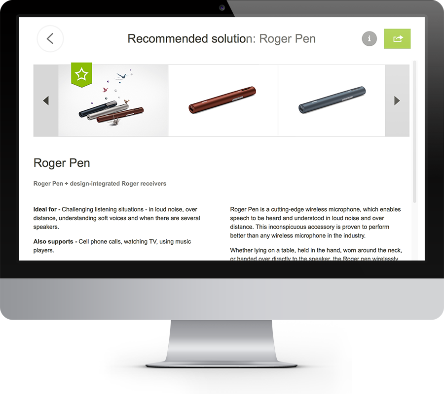 This interactive tool helps you evaluate your clients’ hearing needs and recommends the best possible wireless accessory.
