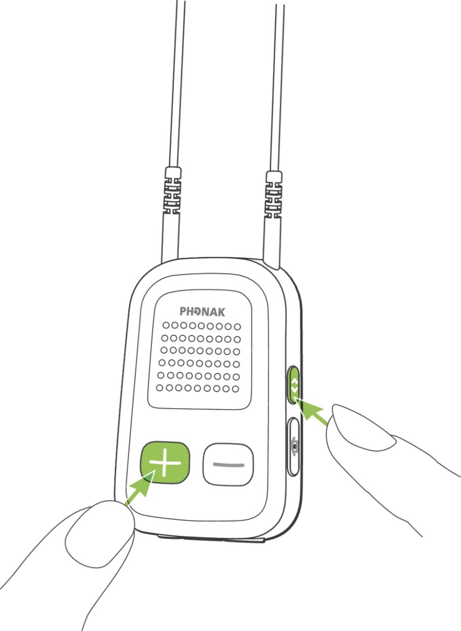ComPilot/ComPilot II: Press and hold the <> and + button simultaneously for 2 seconds until the audio indicator starts to rapidly blink blue.