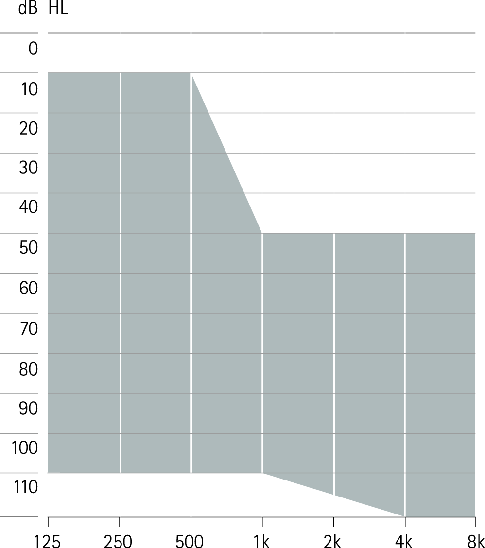 SoundRecover2 proporciona a los usuarios con pérdida de la audición de sonidos agudos una experiencia auditiva aún mejor que con la función original SoundRecover. Se mantiene la calidad sonora de las frecuencias medias y graves, mientras que los sonidos agudos se comprimen y se hacen audibles.4, 5 El comportamiento adaptativo garantiza que esto solo se aplique cuando el nivel de la señal de entrada lo requiera.