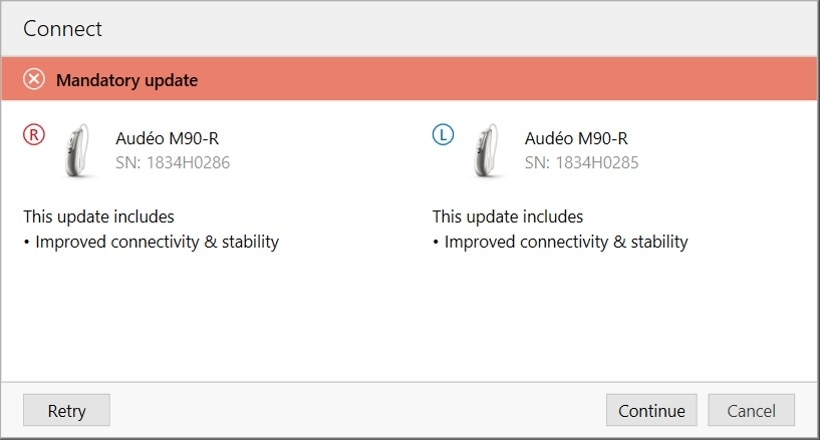 Phonak Target 6.1 se proporcionará con una actualización obligatoria del firmware. Permitirá disfrutar de todos los beneficios de Marvel 2.0 en todos los audífonos Phonak Marvel existentes. A diferencia de otros tipos de actualizaciones de firmware, en esta actualización se mantienen todos los emparejamientos y ajustes existentes.