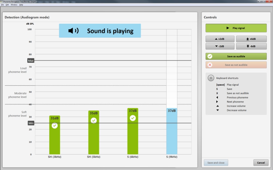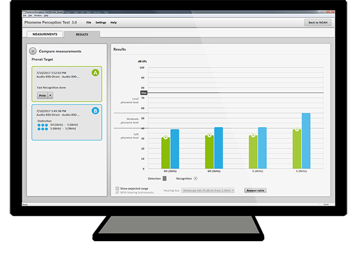 El Test de Percepción Fonética es una herramienta de evaluación exclusiva para valorar la audibilidad y la distinción de alta frecuencia. Proporciona una clara indicación si se ha conseguido una audición verbal de alta frecuencia óptima. La prueba es aplicable para todos los fabricantes.