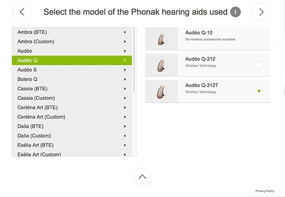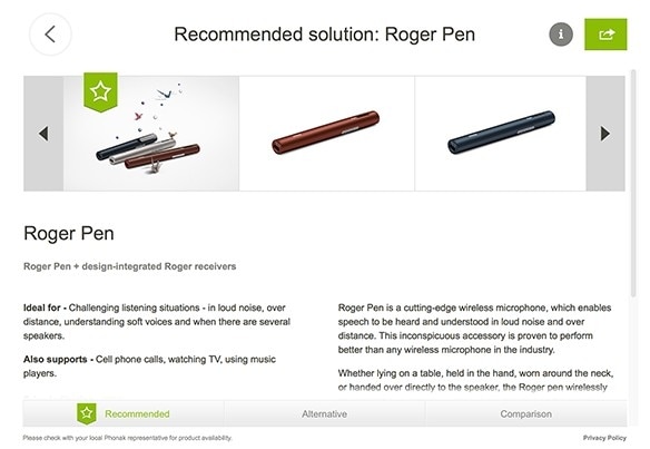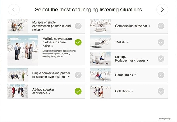 Esta herramienta interactiva le ayuda a evaluar las necesidades auditivas de los usuarios y recomienda el mejor accesorio inalámbrico.